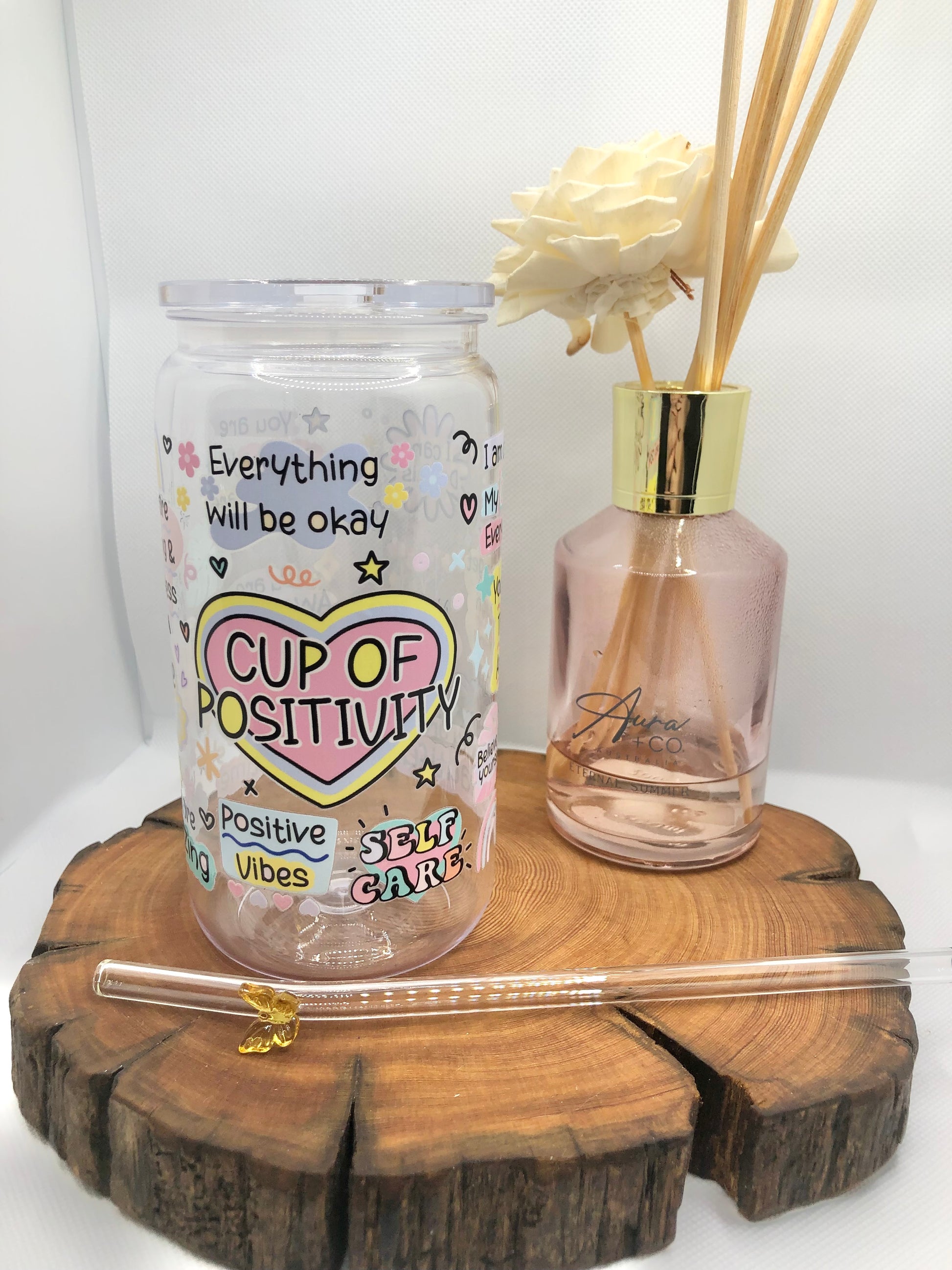 Includes glass or plastic straw & bamboo lid ✨
